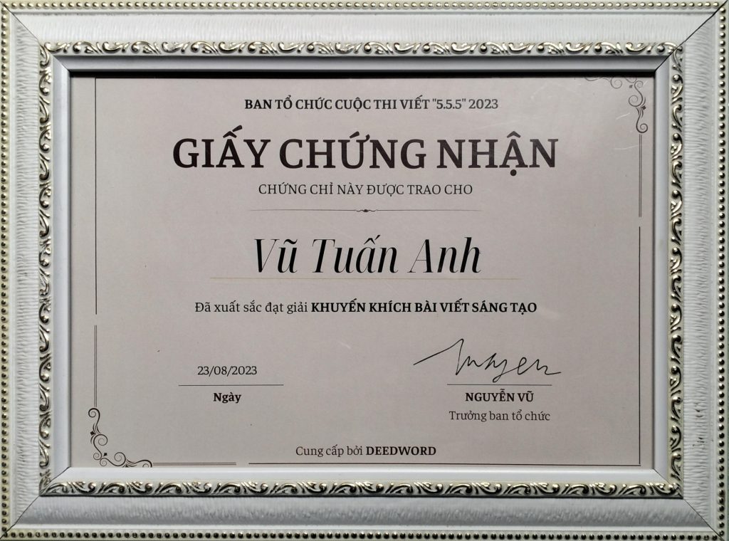 - Bằng khen “Đã đạt danh hiệu Sinh viên 5 tốt” cấp Trung ương năm học 2022 – 2023
